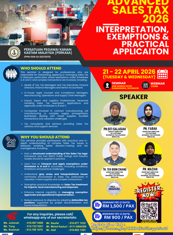 ADVANCED SALES TAX 2026: INTERPRETATION, EXEMPTIONS & PRACTICAL APPLICATION   [21 – 22th ARPIL 2026 : TUESDAY & WEDNESDAY]